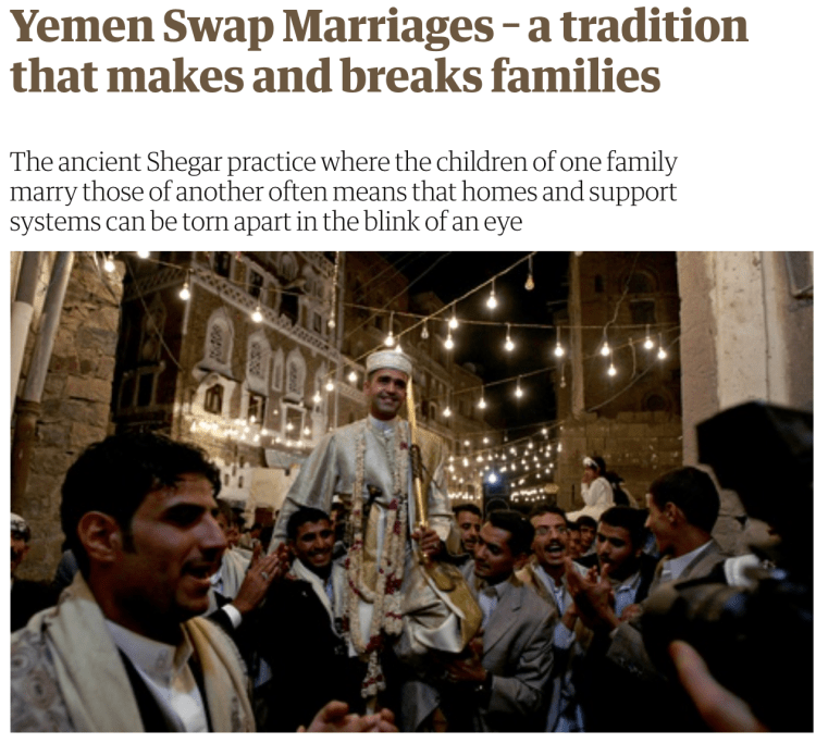 An article in The Guardian reviewing my documentary about swap marriages in Yemen. Click here to read article.